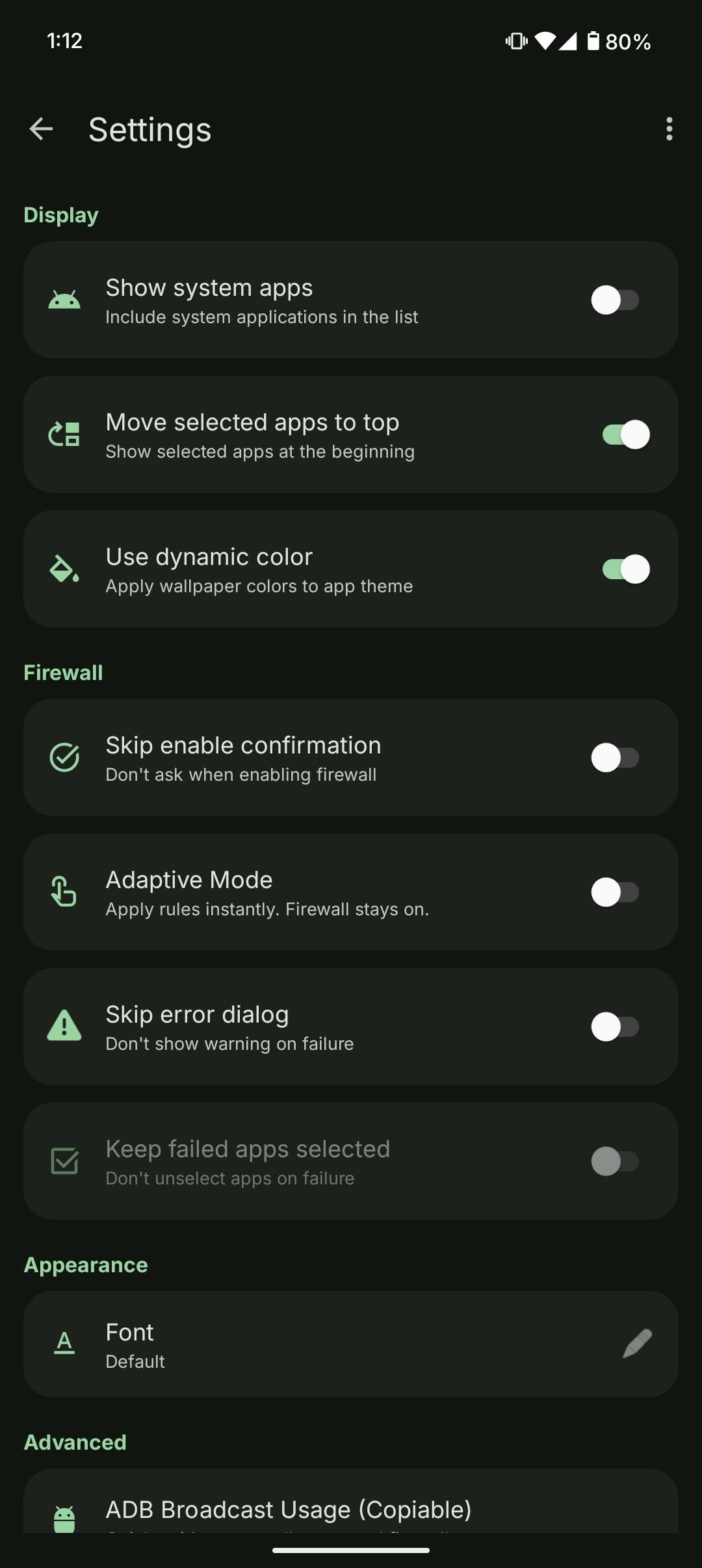 - Firewall rules are applied using platform commands and are automatically cleared on device reboot (Android security limitation).
